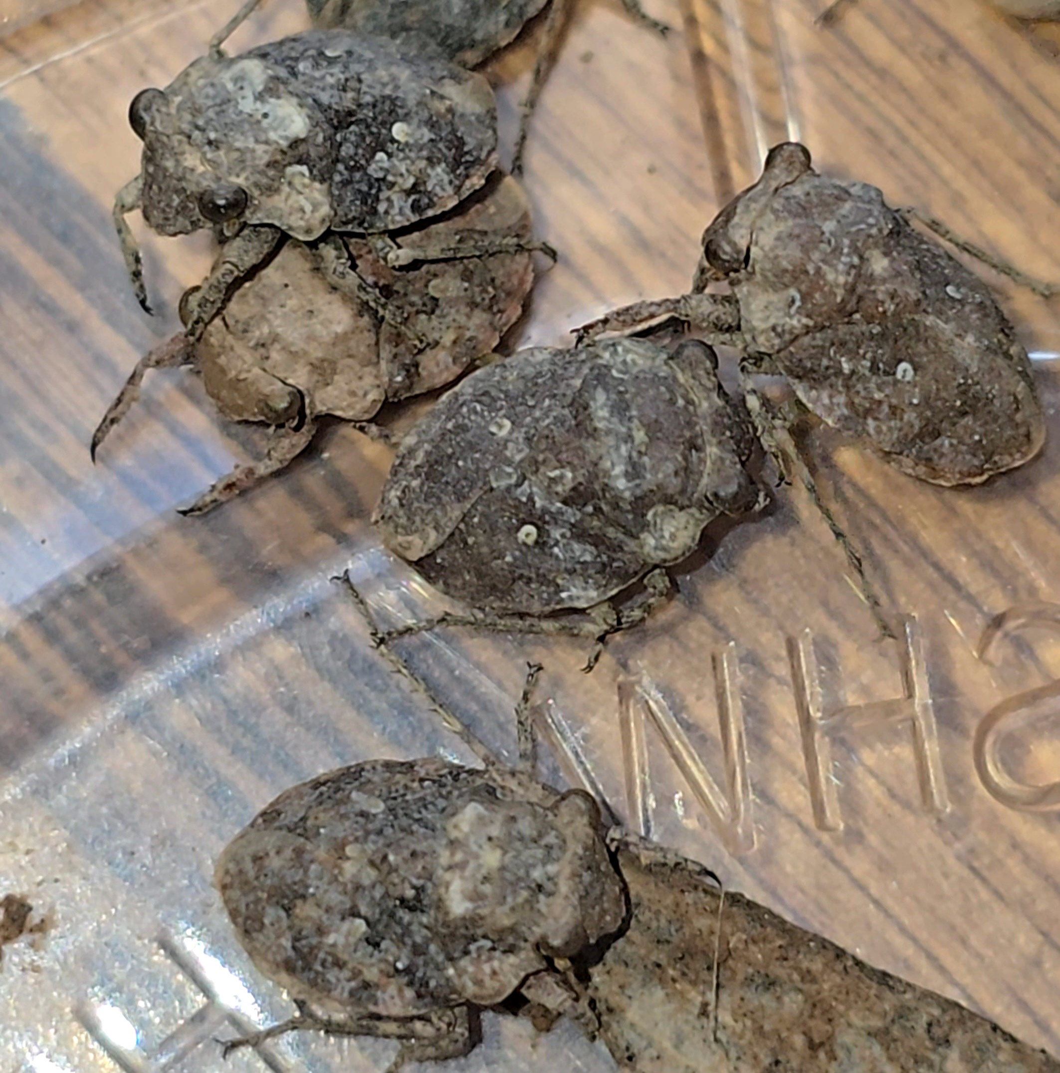 The Toad Bug is a pet insect novelty and they are absolutely adorable! They are smaller than a dime but they are known to live around one year and have been reported as living five years. These true bugs (Hemiptera) are adorable and perfectly named little bugs. They are predators of small insects. They are not aquatic, per se, but are always living in association with streams and creek sides on the shore. They are commonly found where the water saturates into the stream bank.